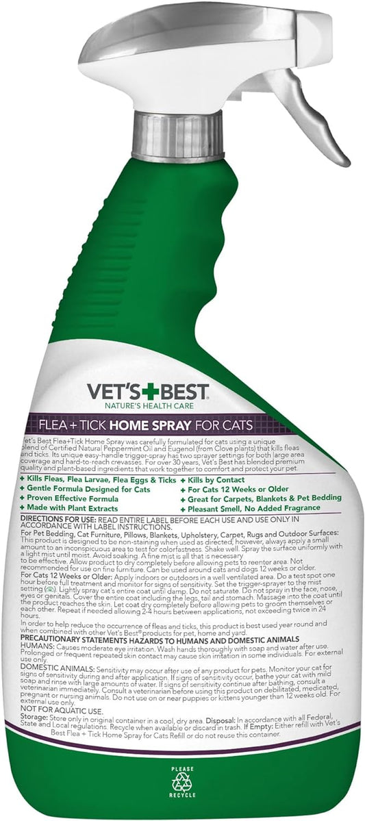 Flea and Tick Home Spray for Cats - Flea Treatment for Cats and Home - Plant-Based Formula - Certified Natural Oils - 32 Oz