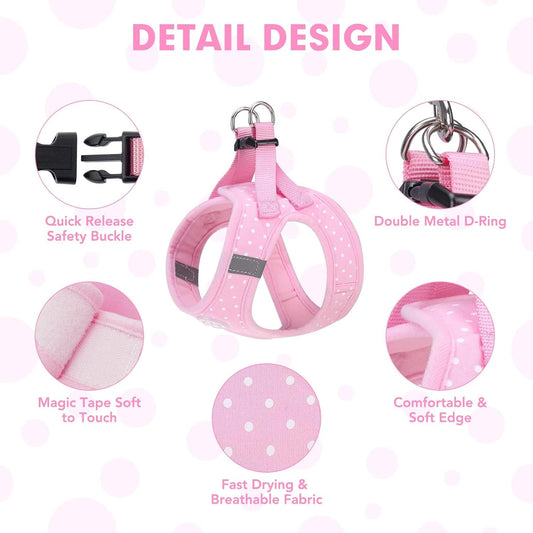 Dog Vest Harness for Puppy and Cat, No Pull Adjustable Reflective Step-In Puppy Harness Cute Pink Polka Dot Soft for Small and Medium Dogs