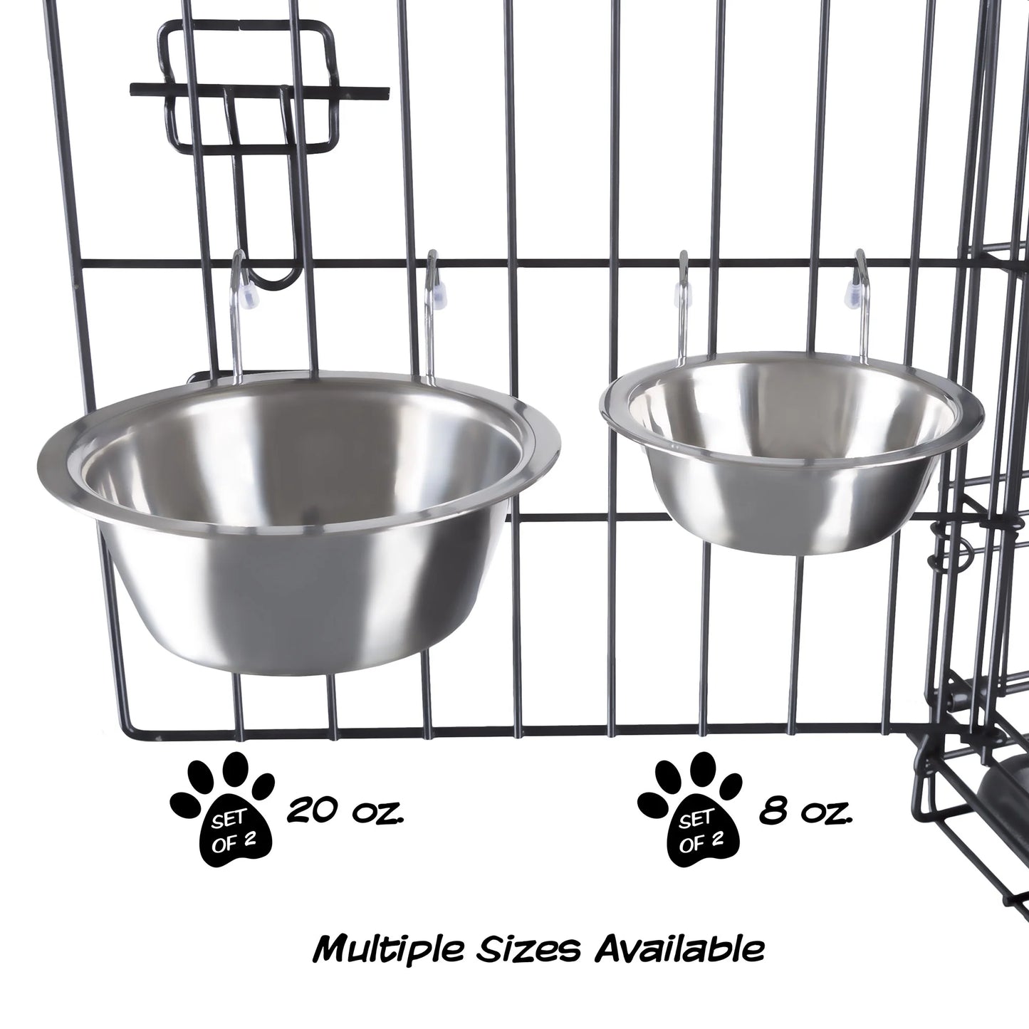Set of 2 Stainless-Steel Hanging Dog Bowls - 8Oz Each